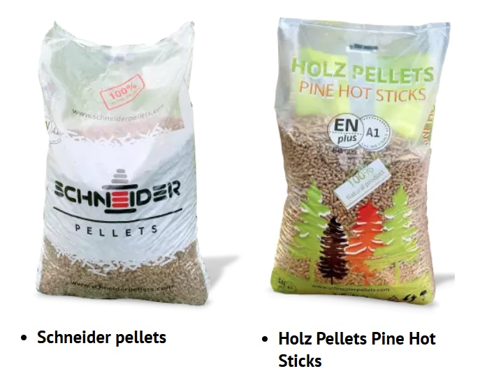 Дървесни пелети Шнайдер. Произведени от 100 % чиста иглолистна белена дървесина. Без допълнителни примеси и лепила. Клас A1. В опаковка от 15 кг торби, 70 торби са поставени на палет с размери 1000 х 1200 мм обвити в стреч-фолио, с капак от фолио, който допълнително предпазва от атмосферни влияния. Сертифицирани по ISO 17225-2 EnPlus A1 BG009 Възможна доставка с падащ борд и палетна количка.